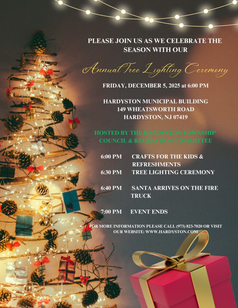 These programs are offered by the Hardyston Recreation Department and held at Wheatsworth Sports and Recreation Complex, with the exception of the tree lighting event. Events are typically free of charge to Hardyston Township residents. For more information call 973-823-7020.